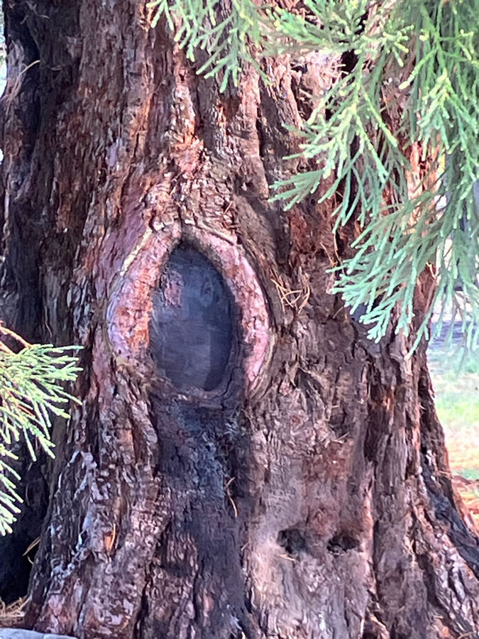 Bark: thick and soft or spongy; it acts as insulation against wild fire in its home range; protecting the cambial tissue below.