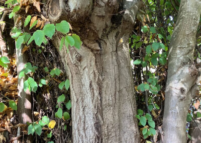 This type of tree has a shallow root system that often brakes above soil surface. It will sucker if impacted or injured; as can be seen in this park tree. The wood is hard and heavy, making good firewood. It is in use in construction and for tool handles in its home range.