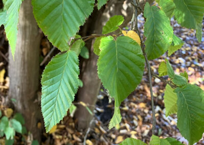 Features: Foliage, leaves are simple, growing alternately along sems, 4-9cm long finely serrated and prominent veins, giving it a corrugated appearance. Autumn colour is yellowing to reds, leaves are retained for long periods during winter, brown in colour.